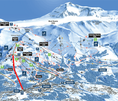 The base station, which takes you up to Cry d’Er at 2,200 meters, is just a short walk away. It’s easily accessible via the blue cable cars departing from Crans. Cry d’Er is a unique spot offering an exceptional panoramic view of the Alpine peaks, including the Matterhorn and Mont Blanc.